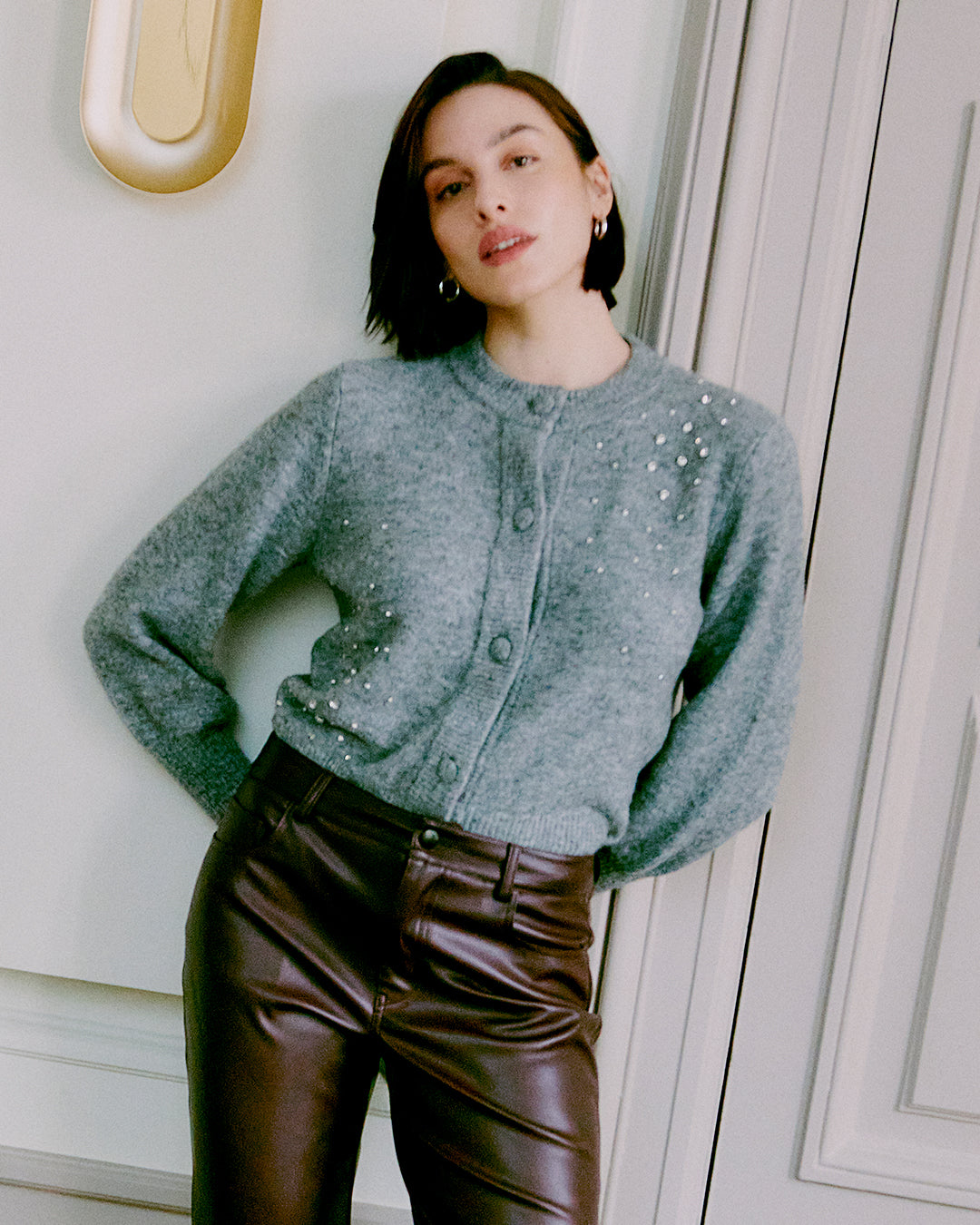 Rhinestone Embellished Cardigan by b.young