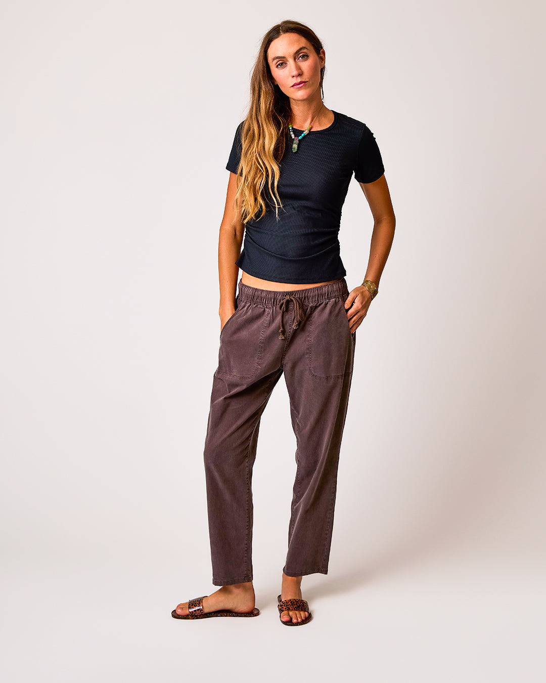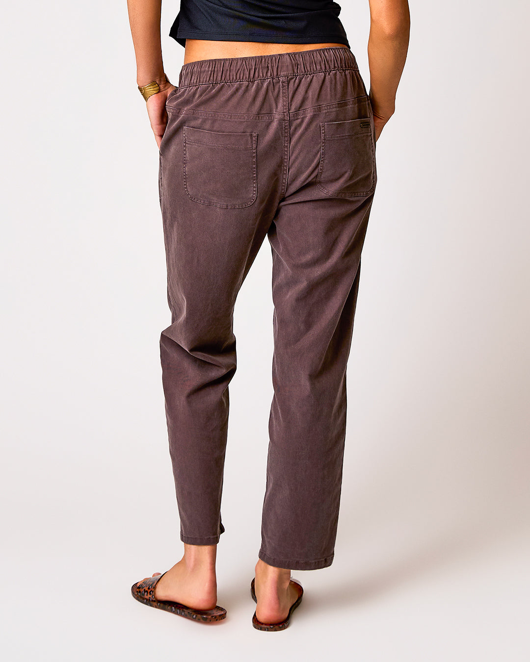 Put a bounce in your step with the casual comfort and competence of the Zoe. This easy pull-on pant with elastic waistband with draw cord is ready for whatever your day demands.