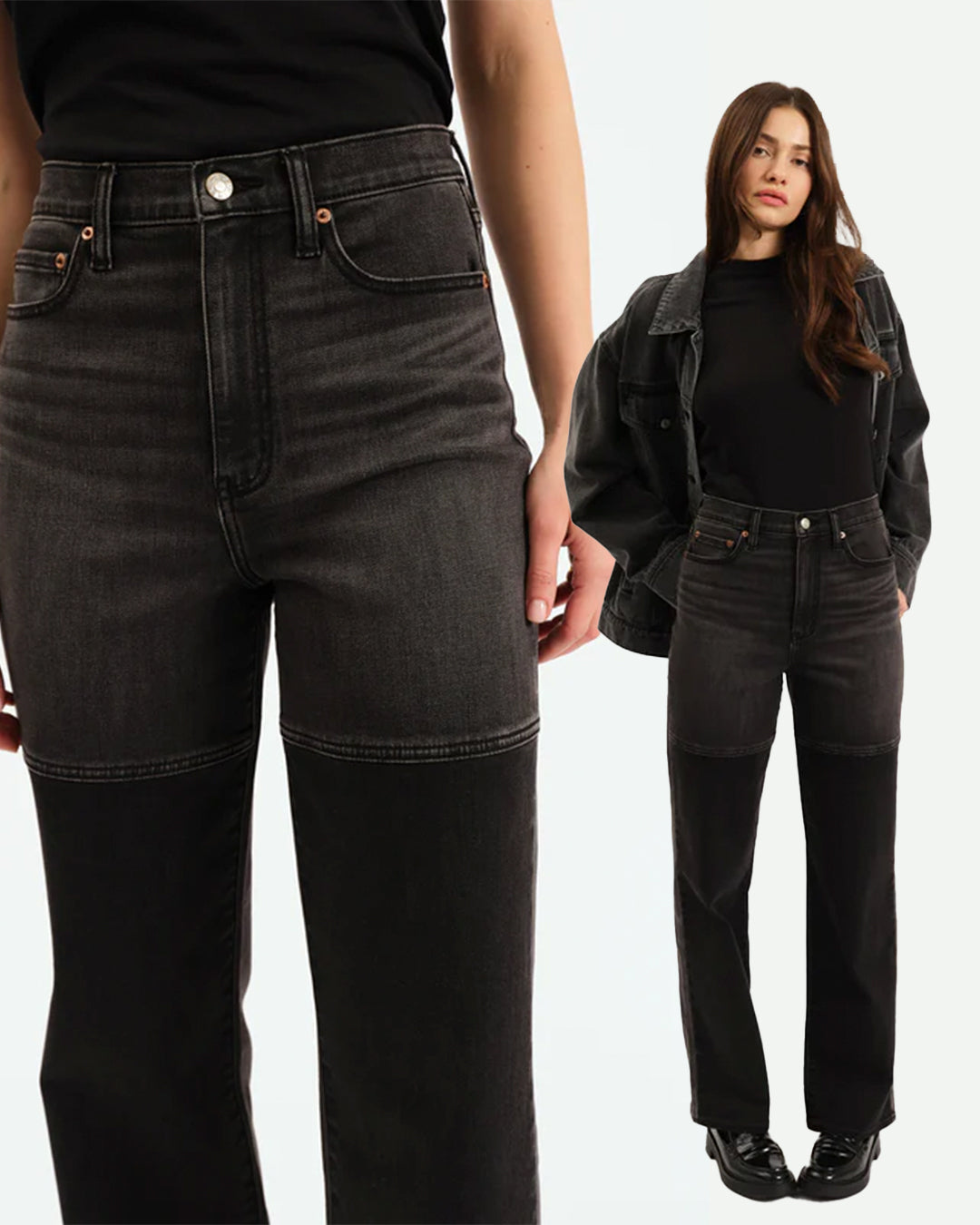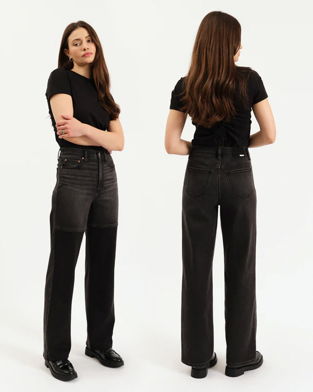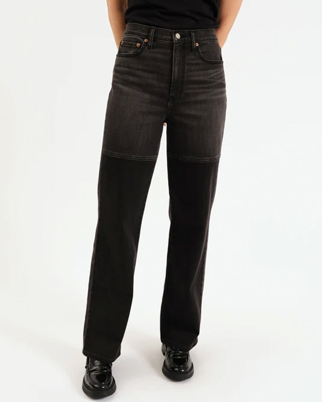The City Straight in Black Double Dip is a high rise straight leg with black wash denim panels against a faded black base. This jean is both playful and versatile – the perfect fit to carry you throughout your day. Constructed from our Just Right fabric, this pair is the perfect mix of rigid and stretch.