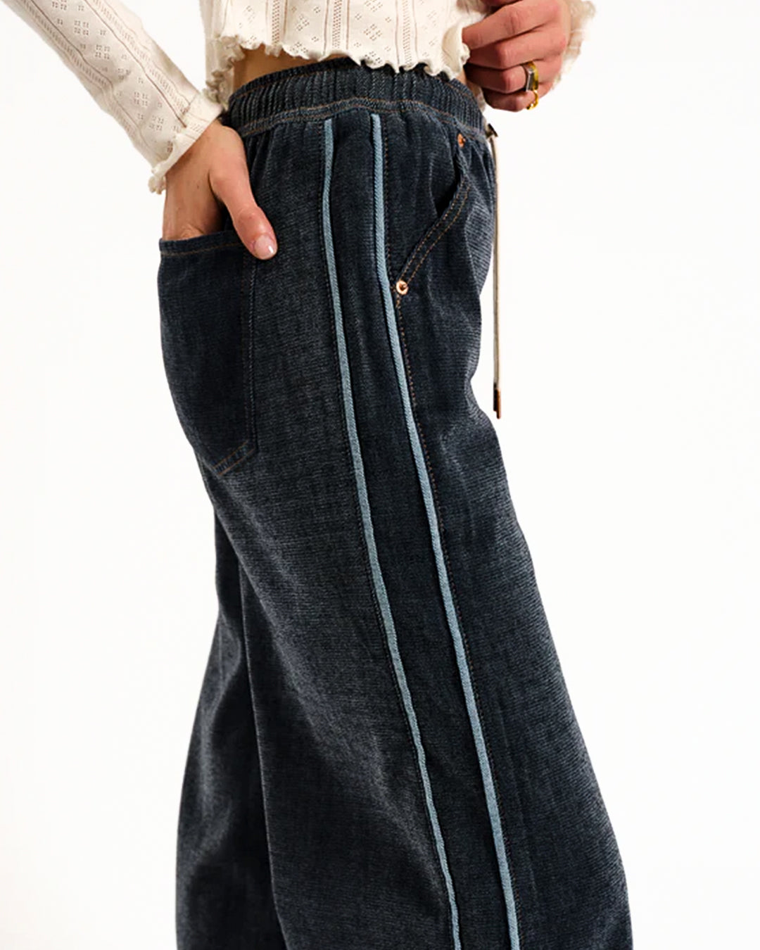The Cozy Jean Wide Leg Pull On in Sky Whisper is a non-stretch, wide-leg silhouette that combines the comfort of a sweatpant with the polish of a denim-inspired style. Its relaxed fit and pull-on design make it effortless for lounging or running errands in style.