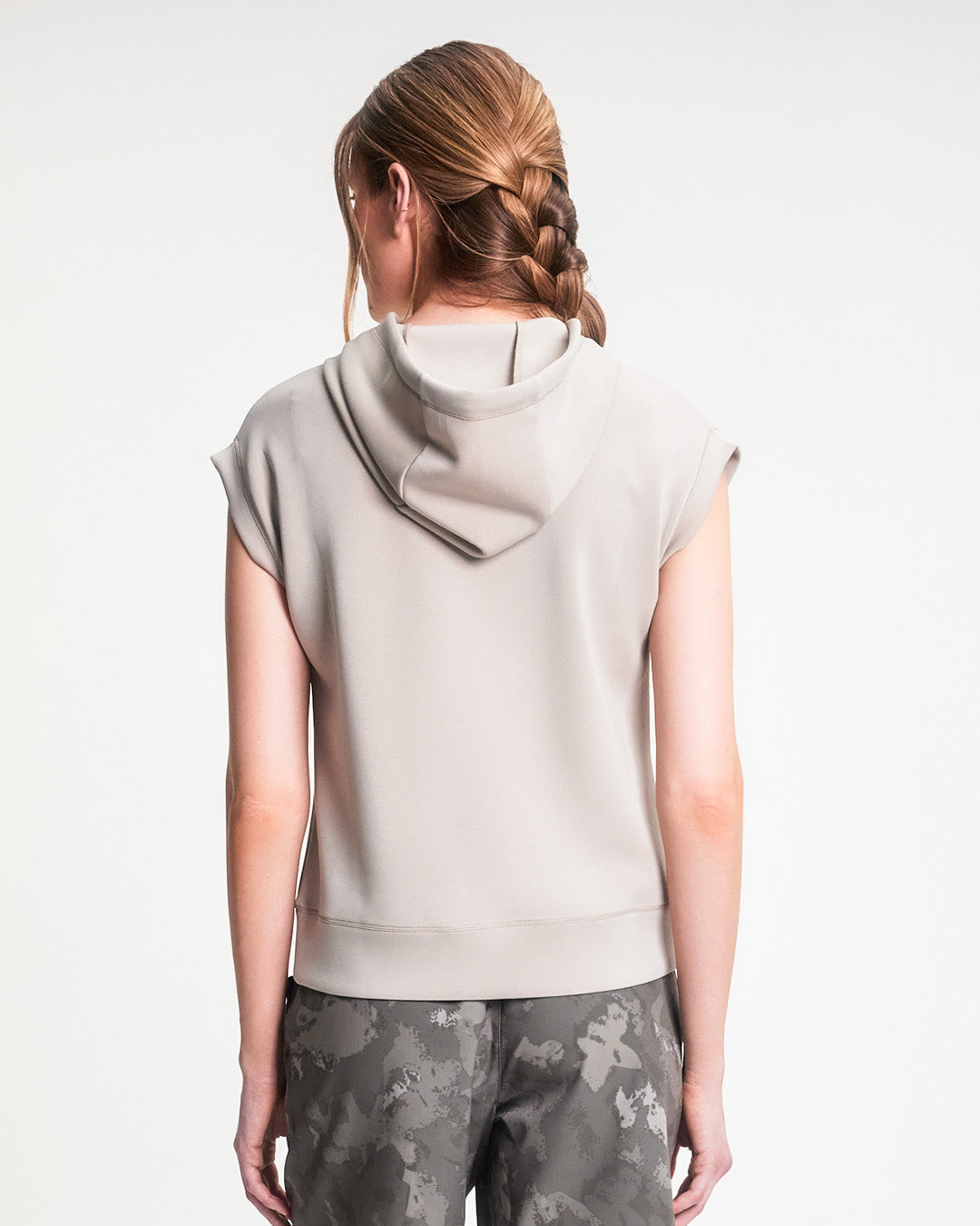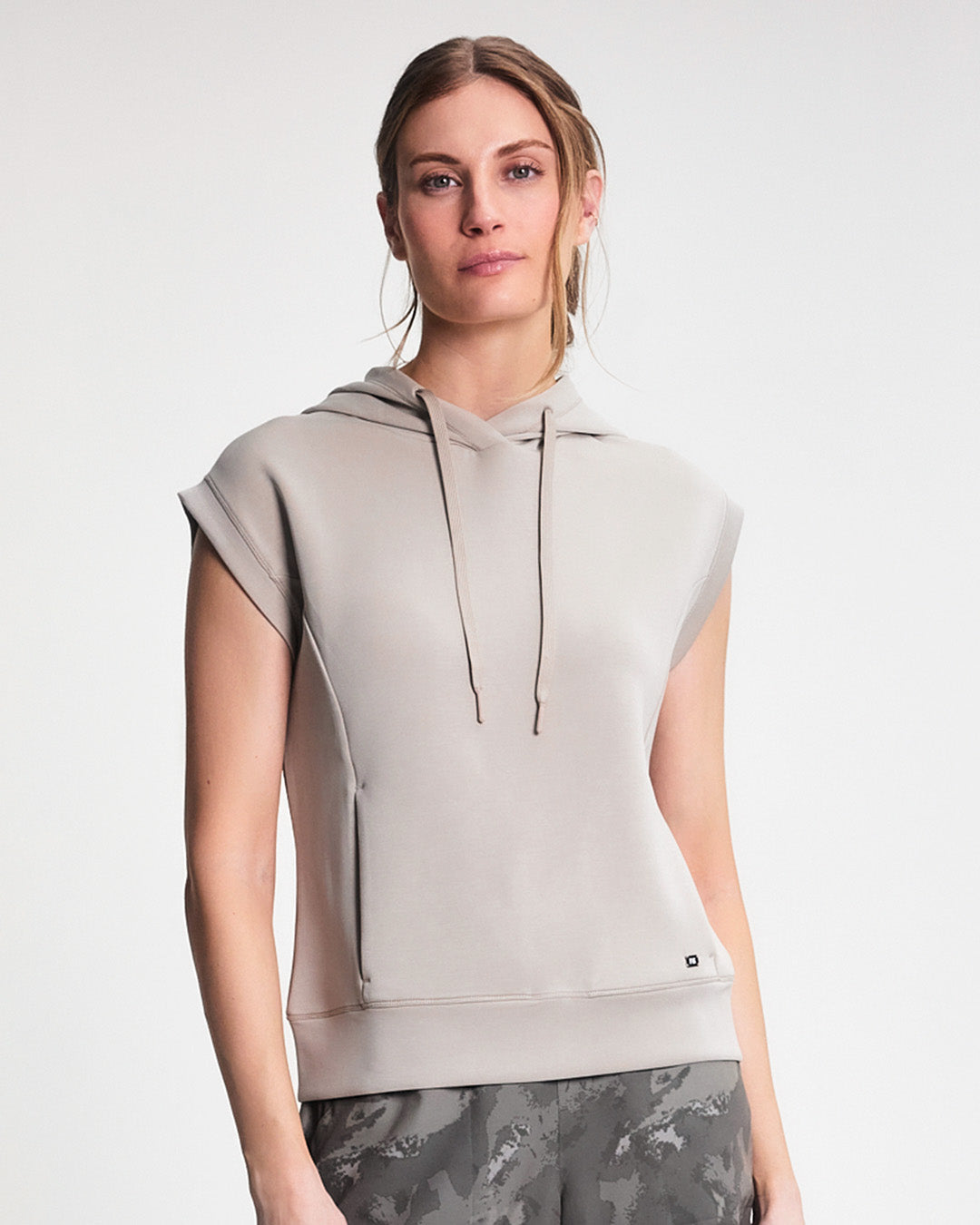 The ultimate in softness, this sleeveless hoodie is made of super stretchy Scuba Modal Soft Touch fabric perfect layering top for your next workout or vacation.