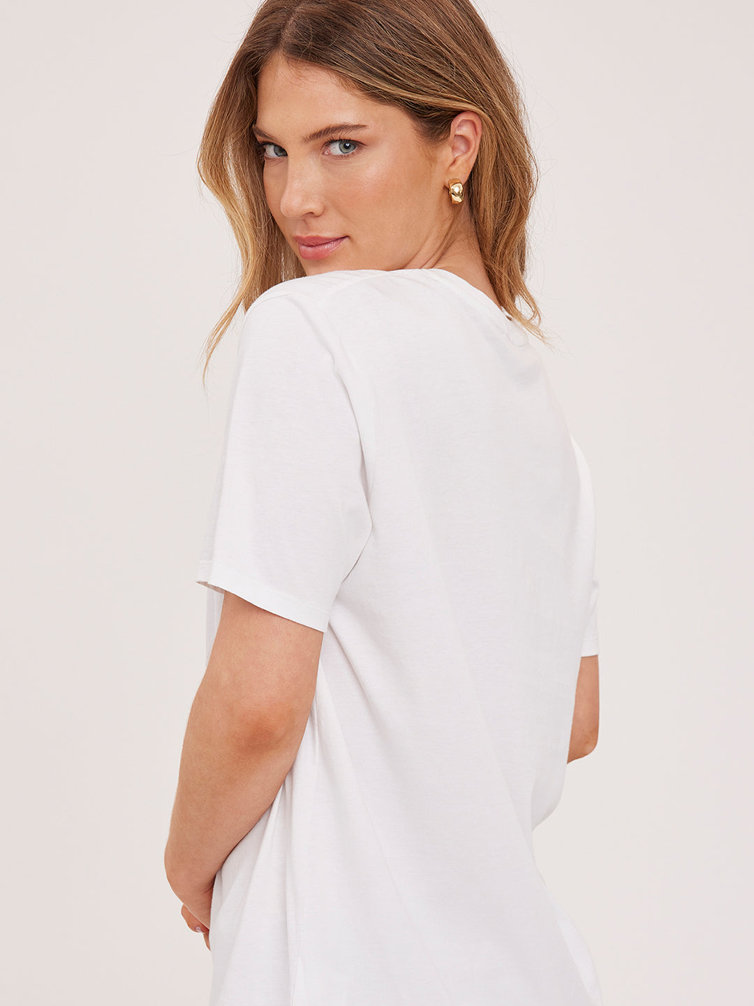 The Victoria t-shirt is part of our Icon Series, a collection of classic silhouettes made exceptional by the women who wear them. It's made of a cotton jersey fabric that has been specially washed for a perfectly lived-in look. Features include a crew neckline and relaxed fit.