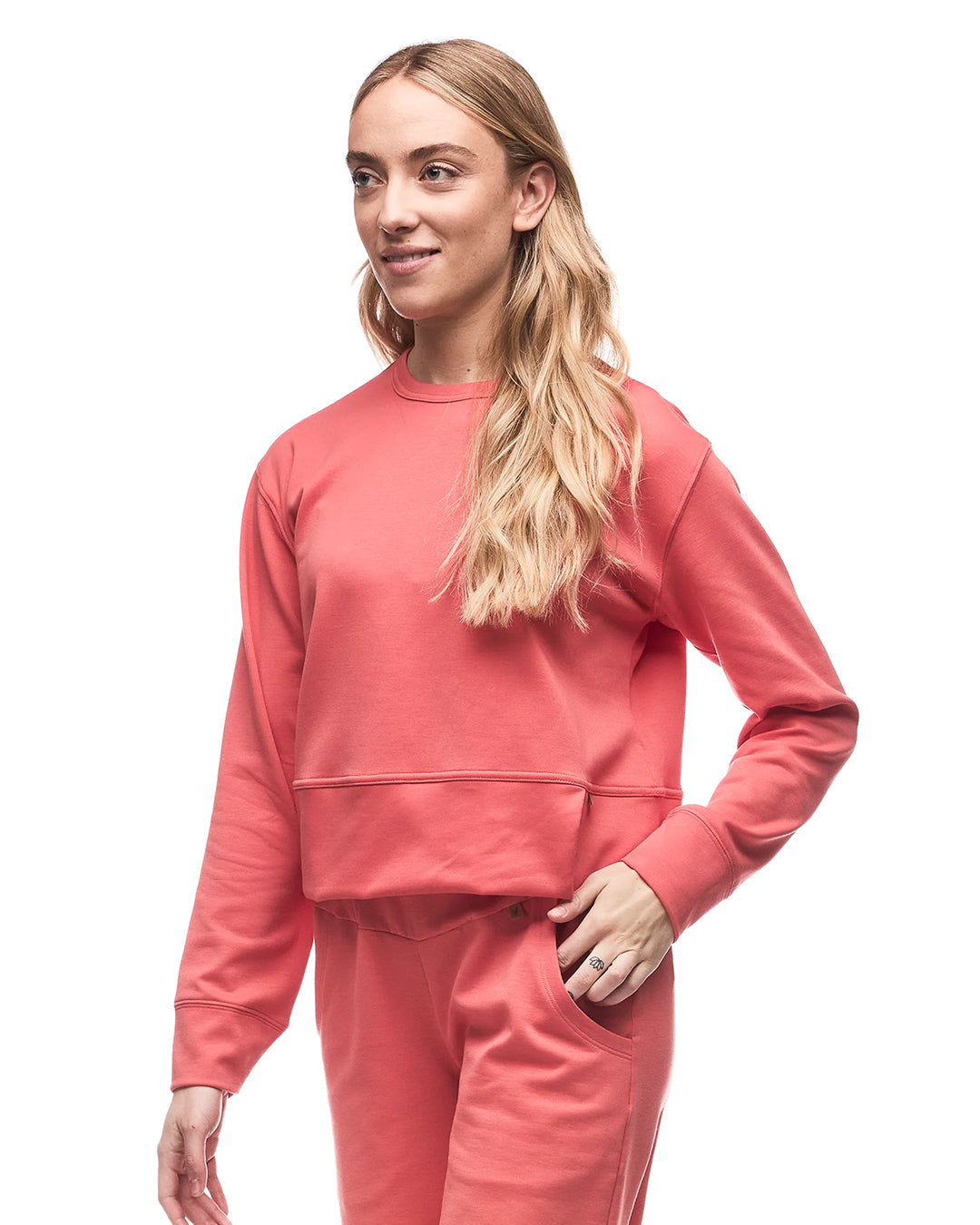 A crewneck sweater with dropped shoulders, cropped length and soft banded cuffs. The waist-skimming length and side vents make this top a layering breeze.