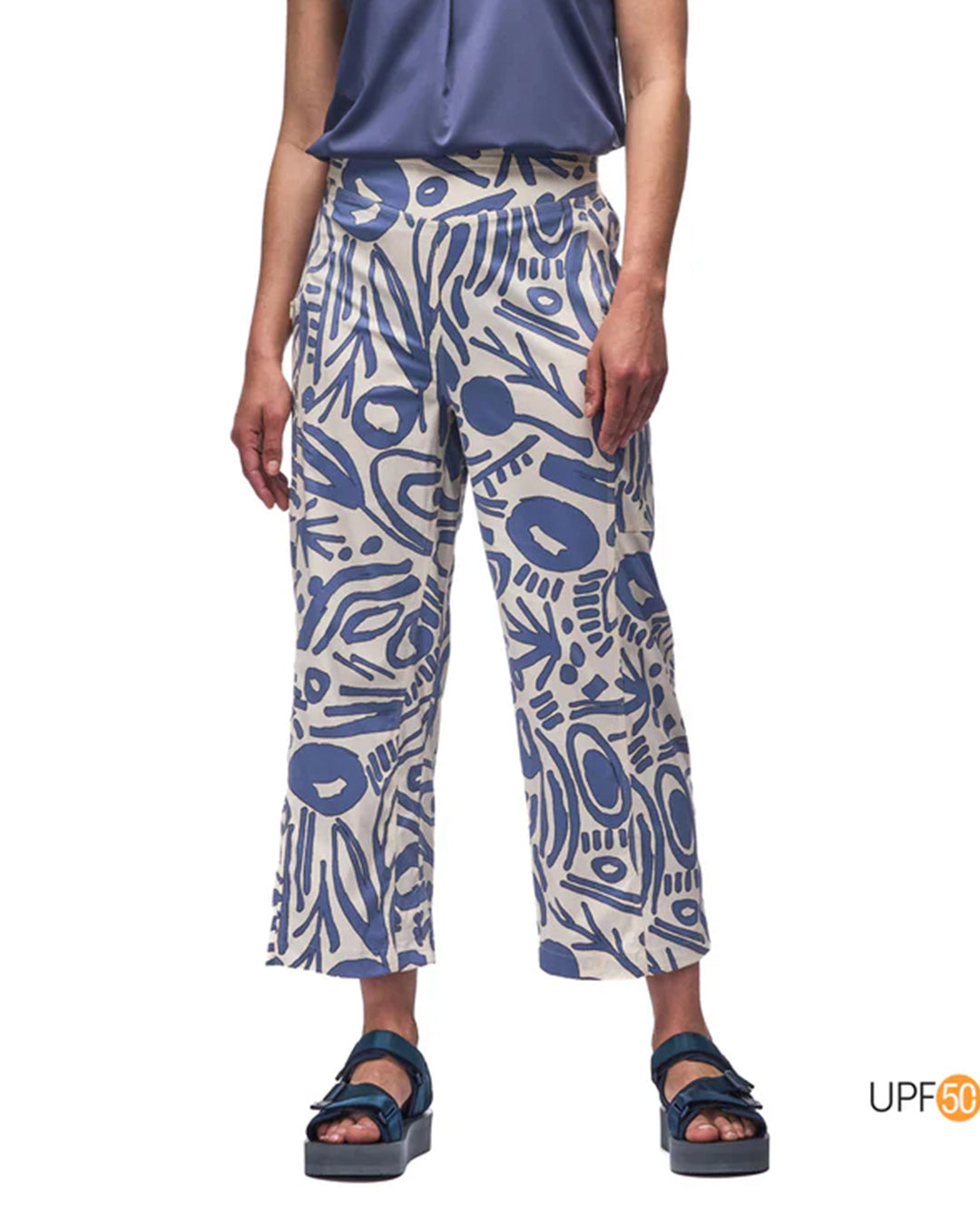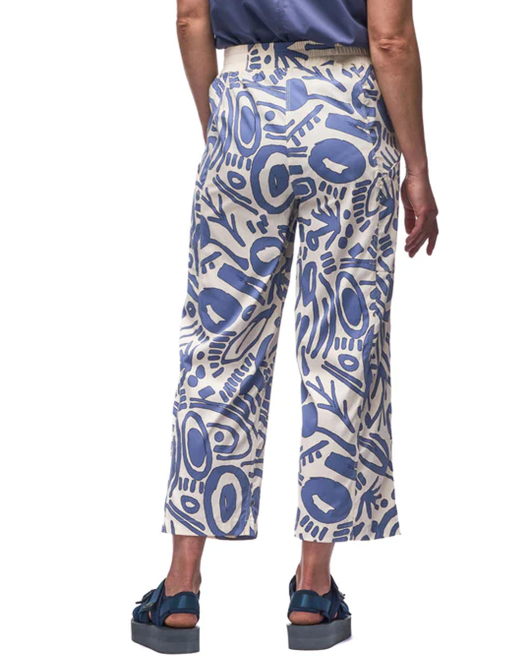 High-waisted wide-leg cropped pants with two pockets, one of which is secured with a zipper.