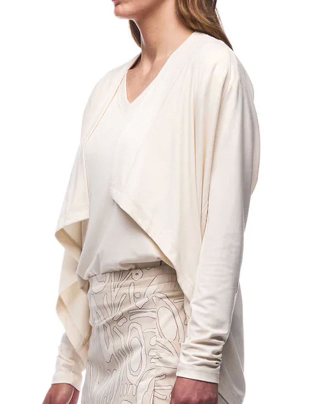 Versatile and reversible wrap cardigan that can be worn in two different lengths.