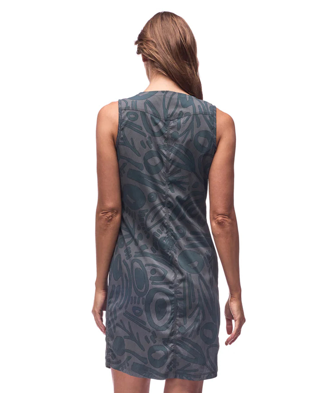 Iconic INDYEVA dress, sleeveless, fitted without clinging to your curves. Wick detail at the neckline.