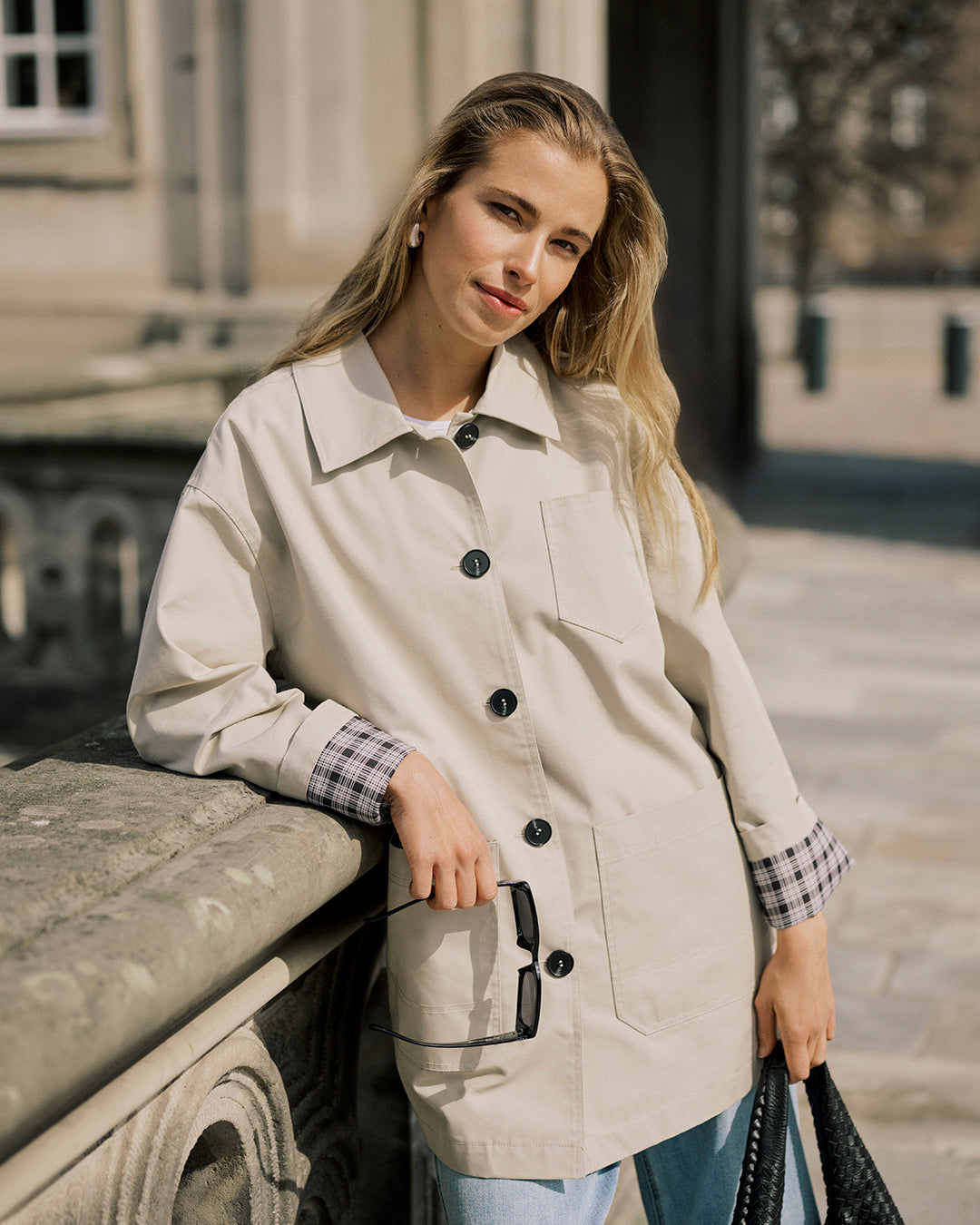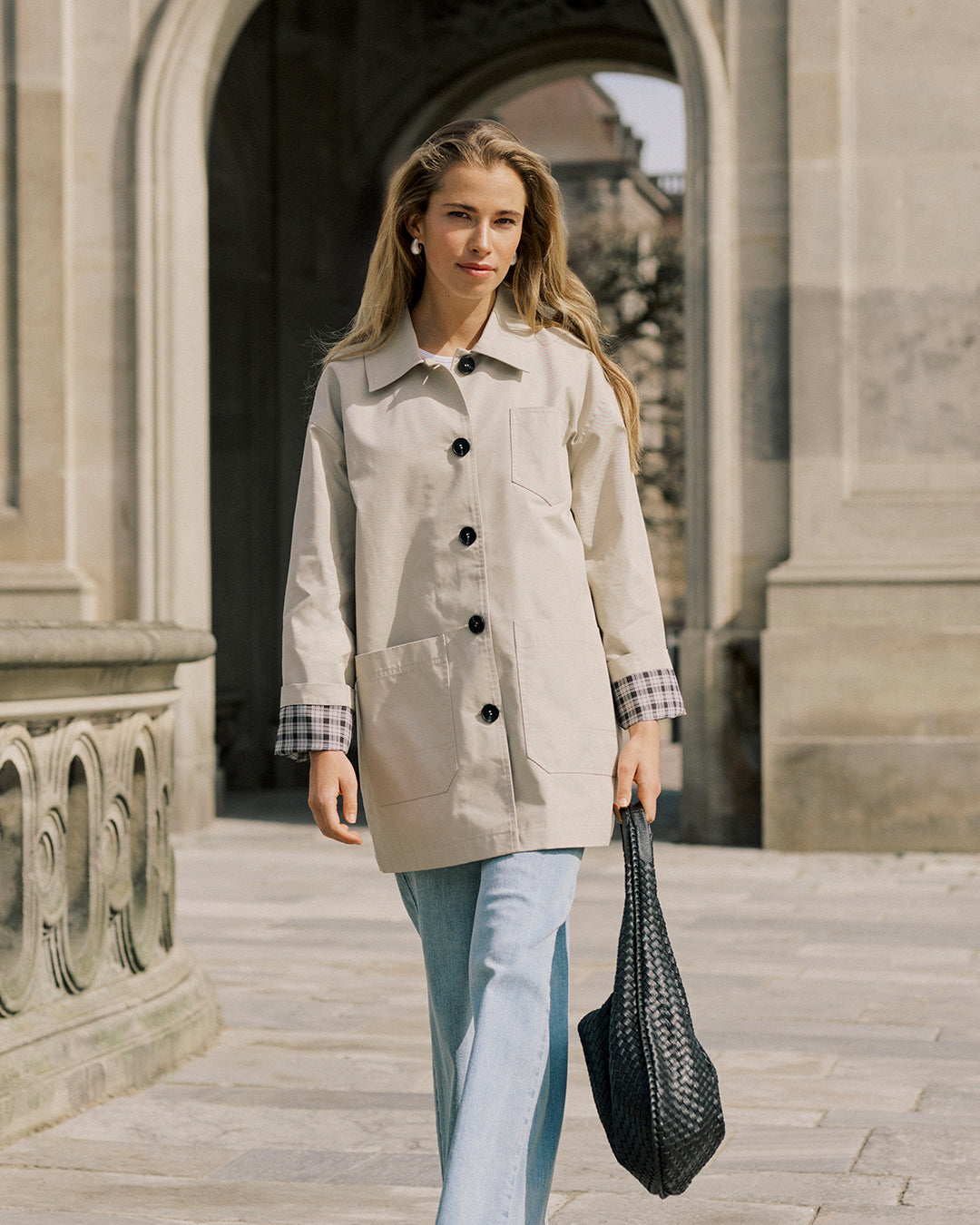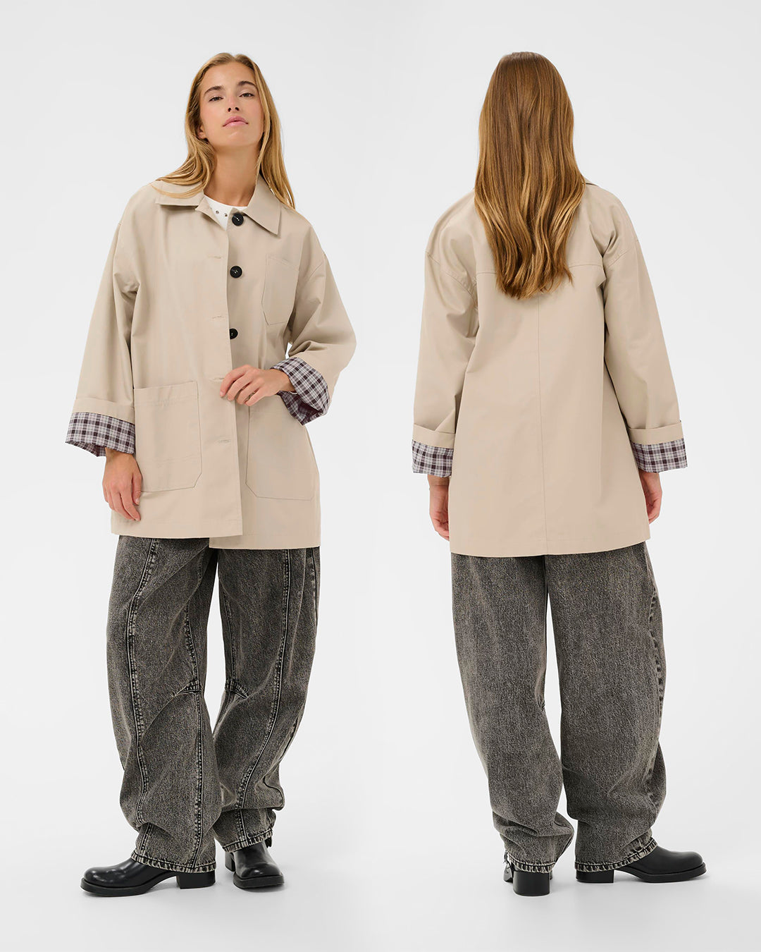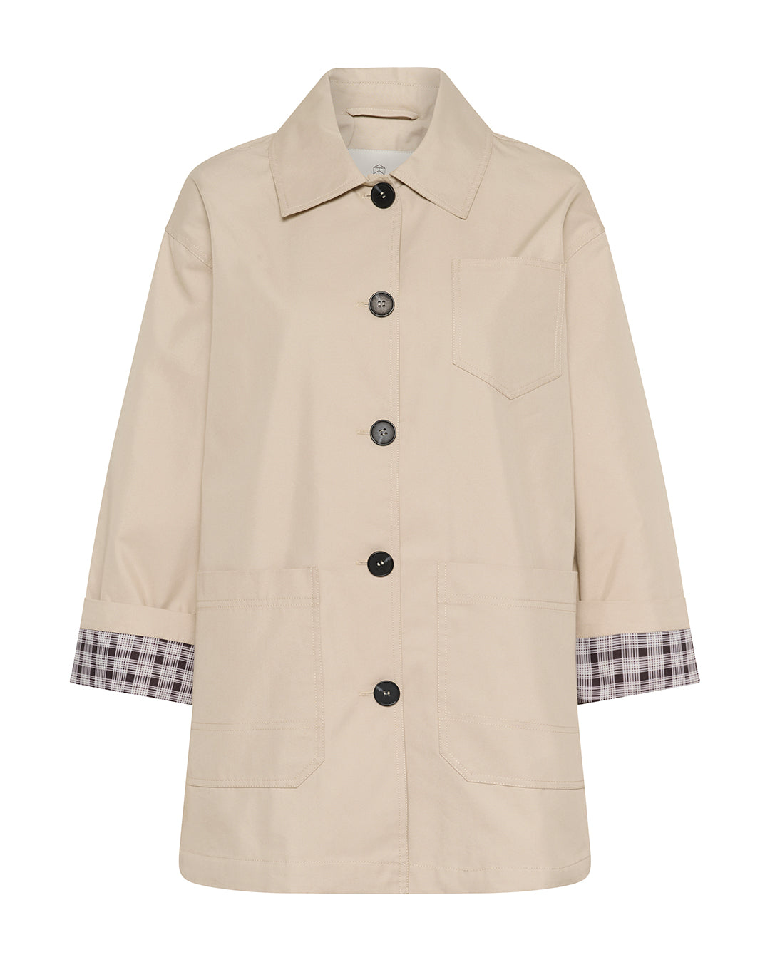 Button Trench Coat with Plaid Liner by Kaffe