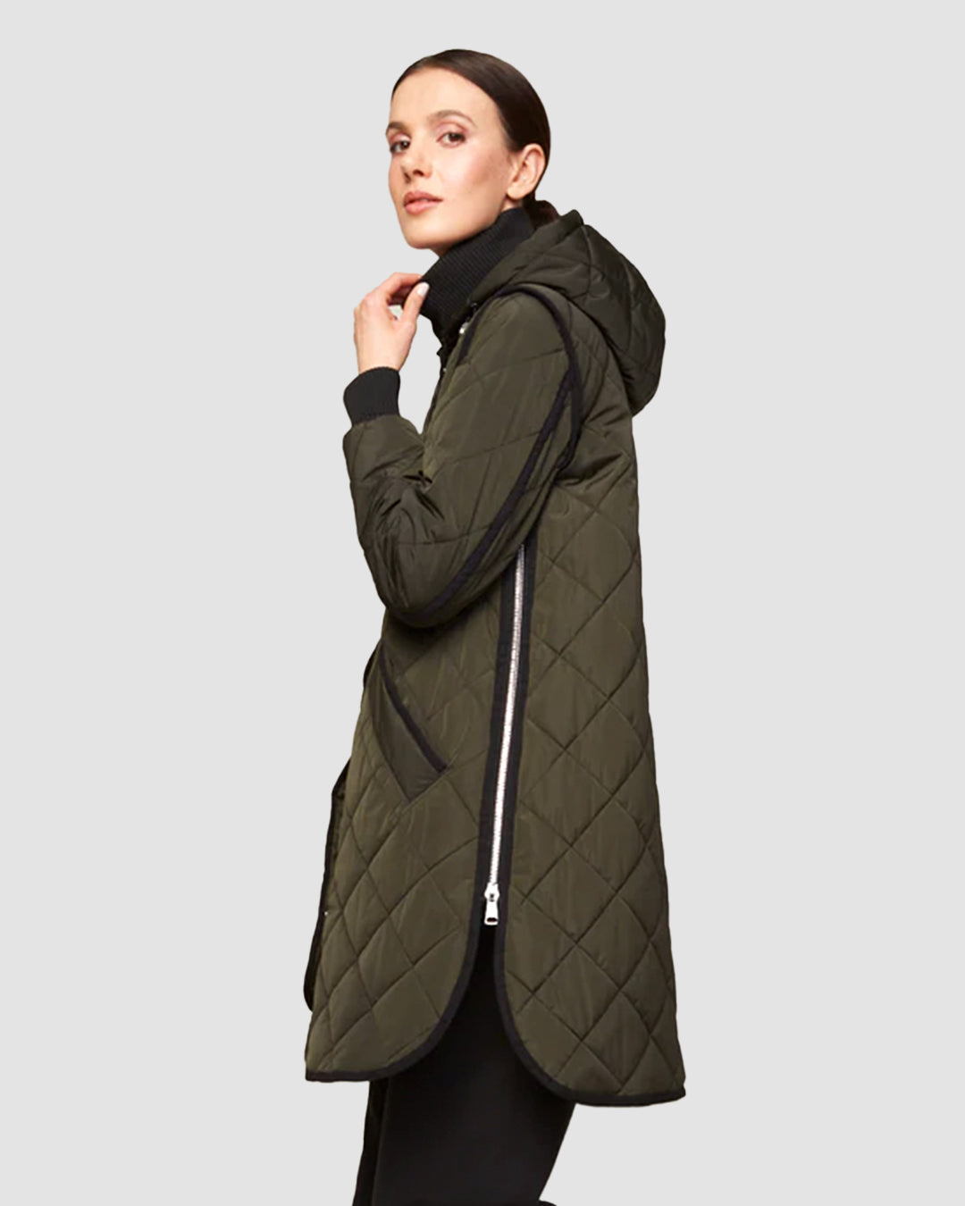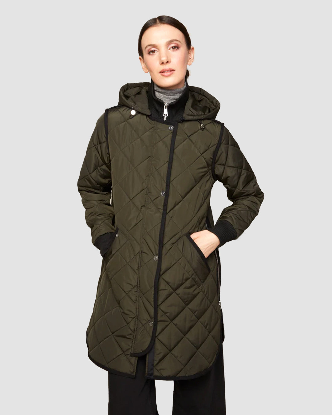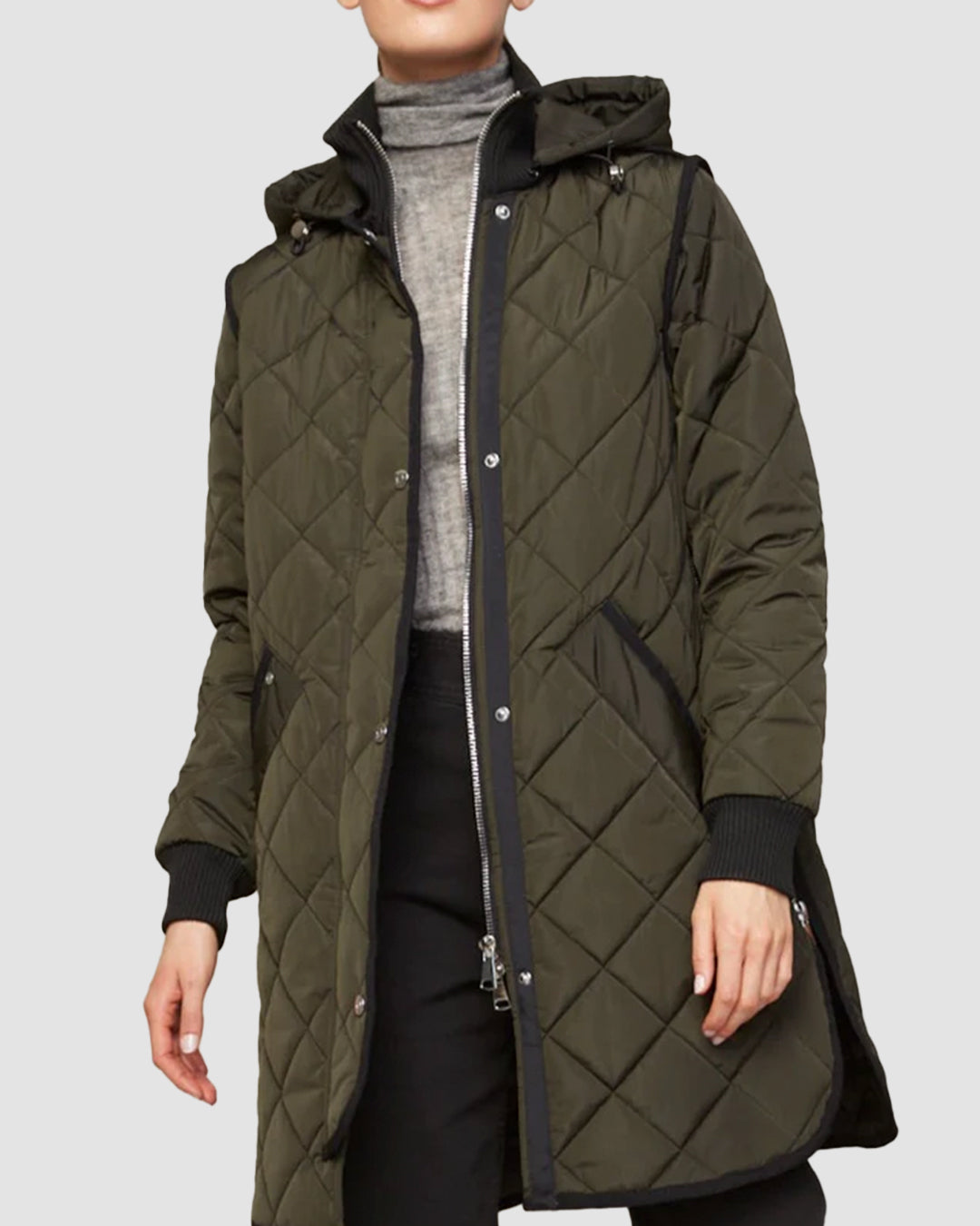 High funnel neck with rib collar detail with removable hood with adjustment with bungee and stopper by Adroit Atelier
