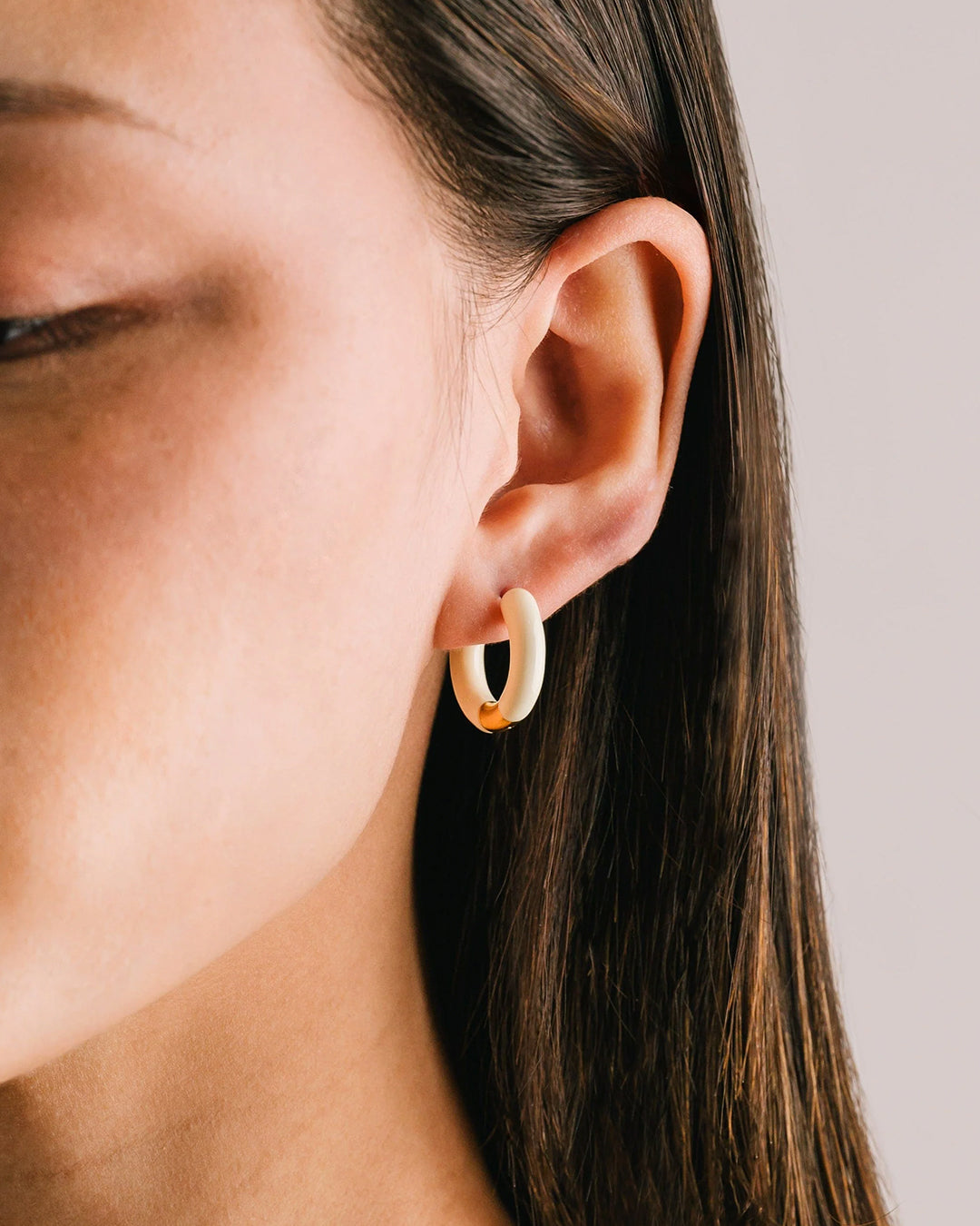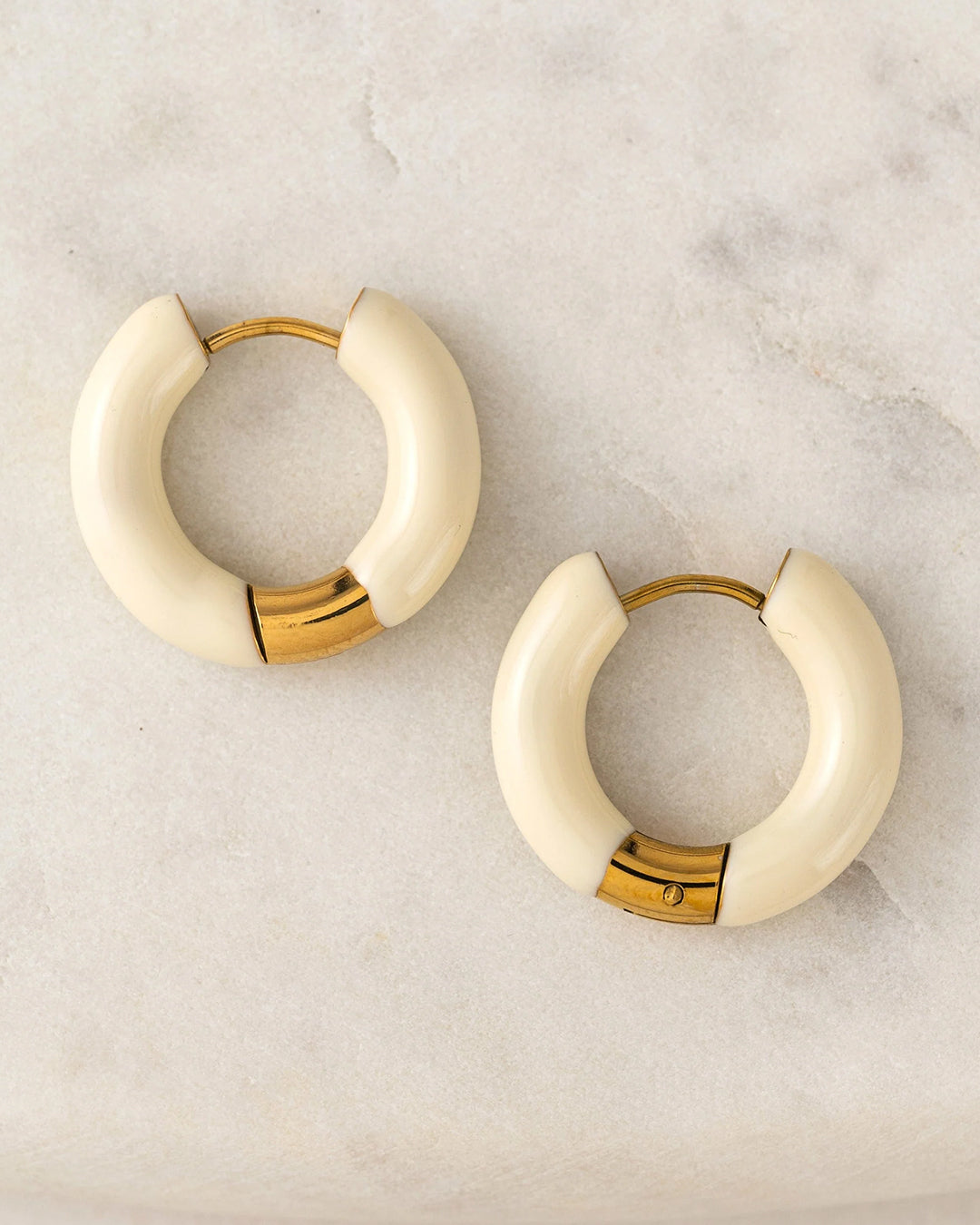 An enamel hoop that marries retro styling and modern sophistication. Made with PVD and stainless steel, you can wear these waterproof earrings anywhere.