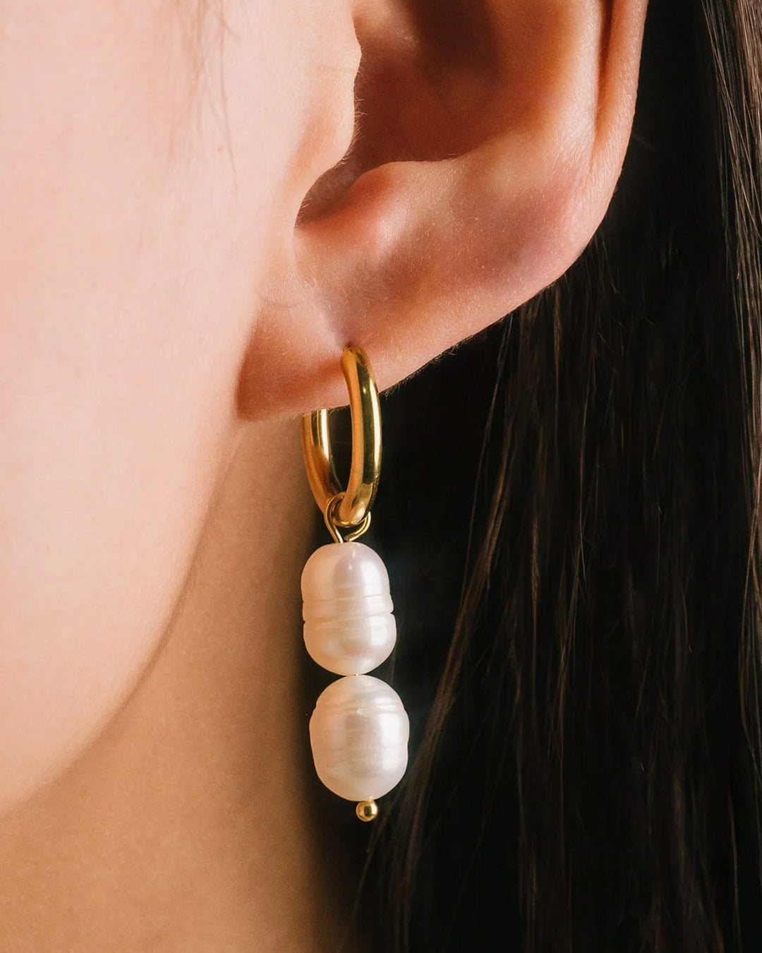 Twice the pearls, twice the charm. These dainty hoops bring an effortless elegance that sways with you—classic, but never boring.