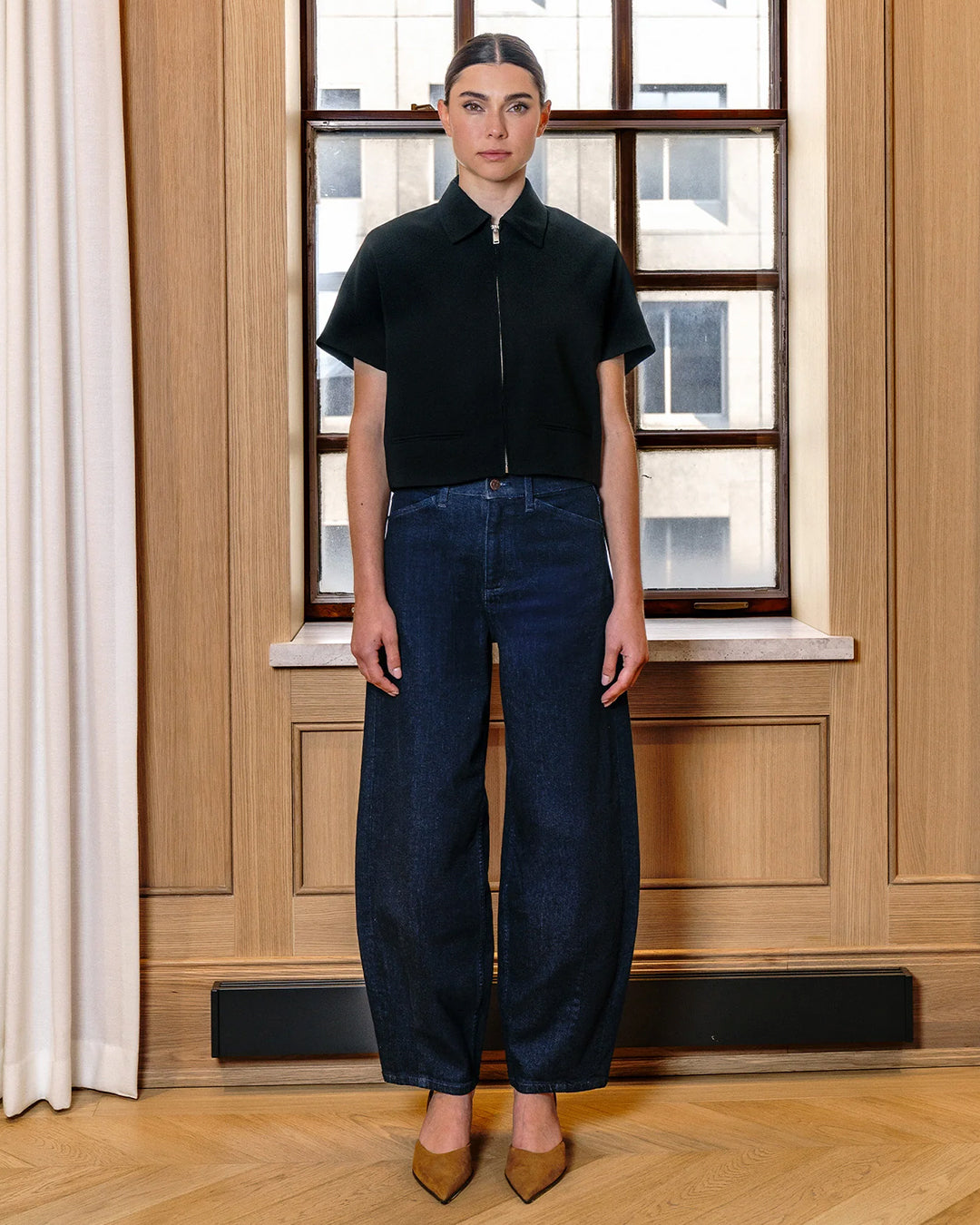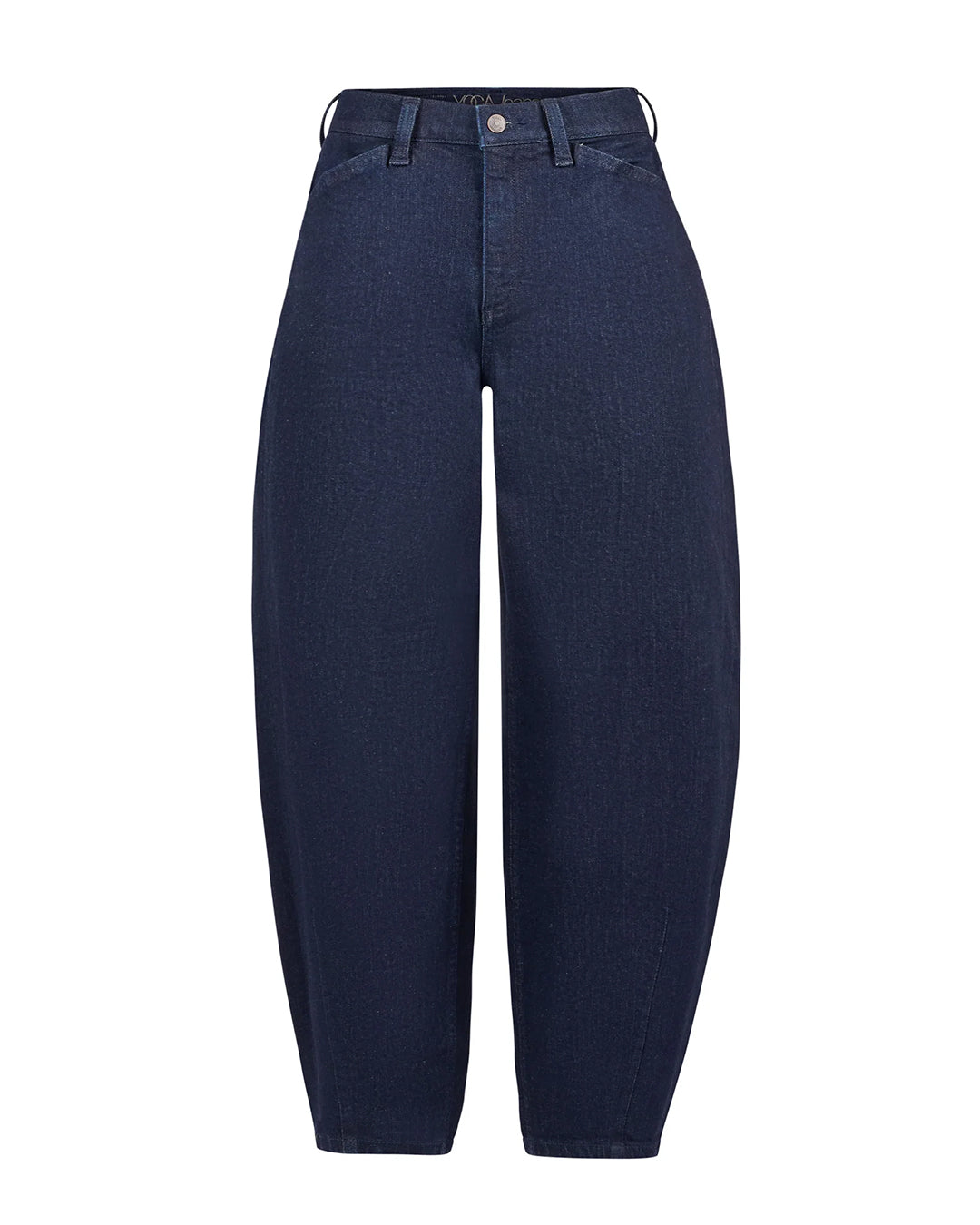 Mahina is our take on the barrel trend. With its soft barrel shape, minimalist slit pockets, and sleek tonal stitching, this deep indigo pair is both fashion-forward and wearable. Designed to sit comfortably below the waist and hit at the ankle, it's made for everyday versatility.
