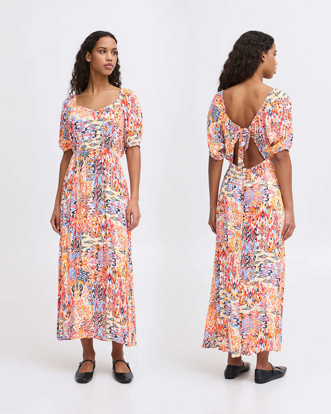 Print Maxi Dress with Back Cut out by ICHI