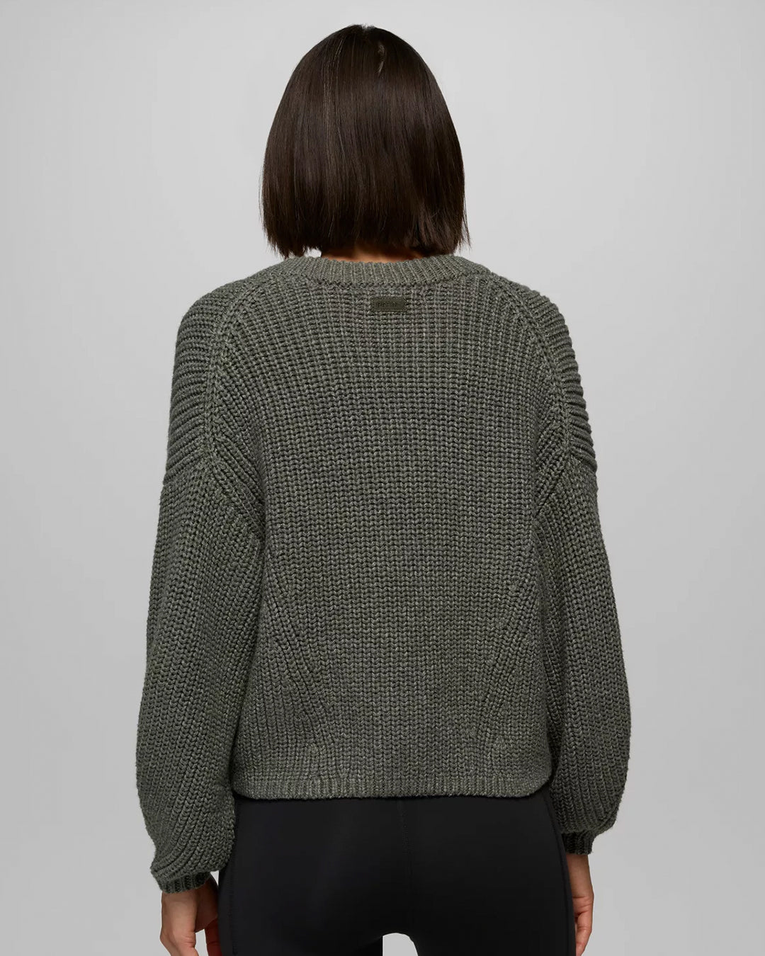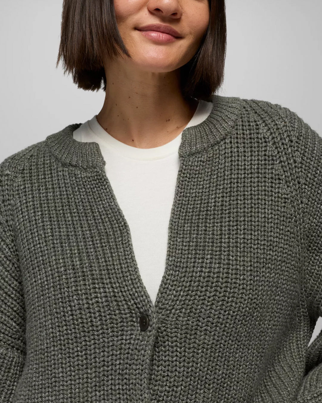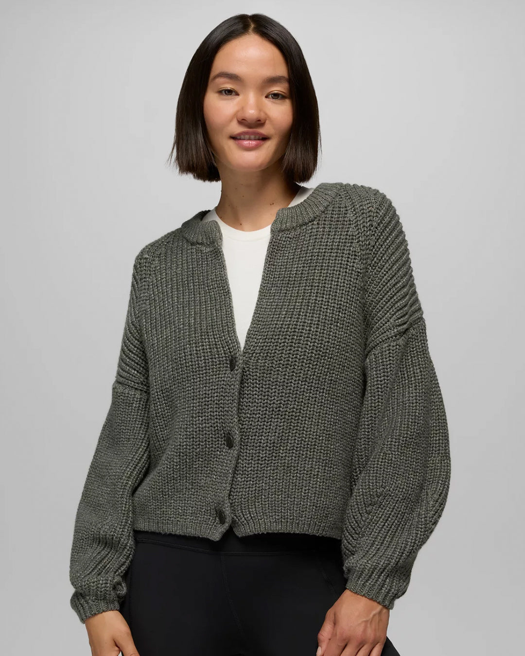 The Sunday River Short Cardigan features a relaxed fit and roomy sleeves. It’s designed with a soft chunky knit, dropped shoulders, and a button-up front for versatility.