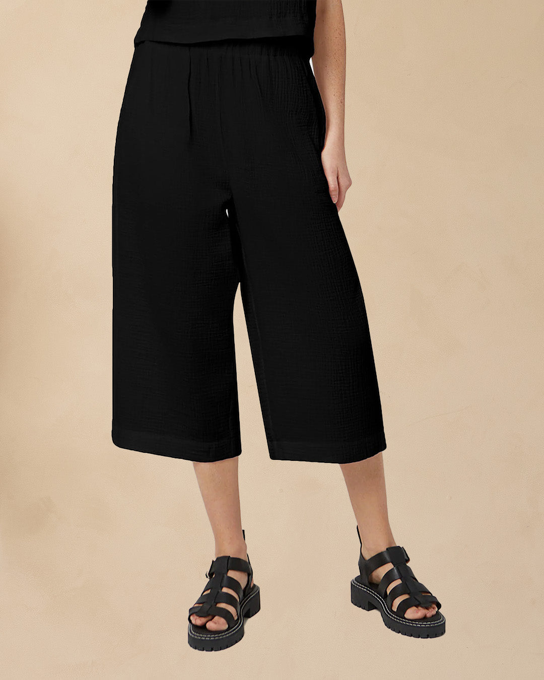 The SIMOS pants combine comfort and softness thanks to their light-weight double gauze fabric. With a relaxed and shortened silhouette, it's a perfect choice for seaside getaways or lounging by the pool.
