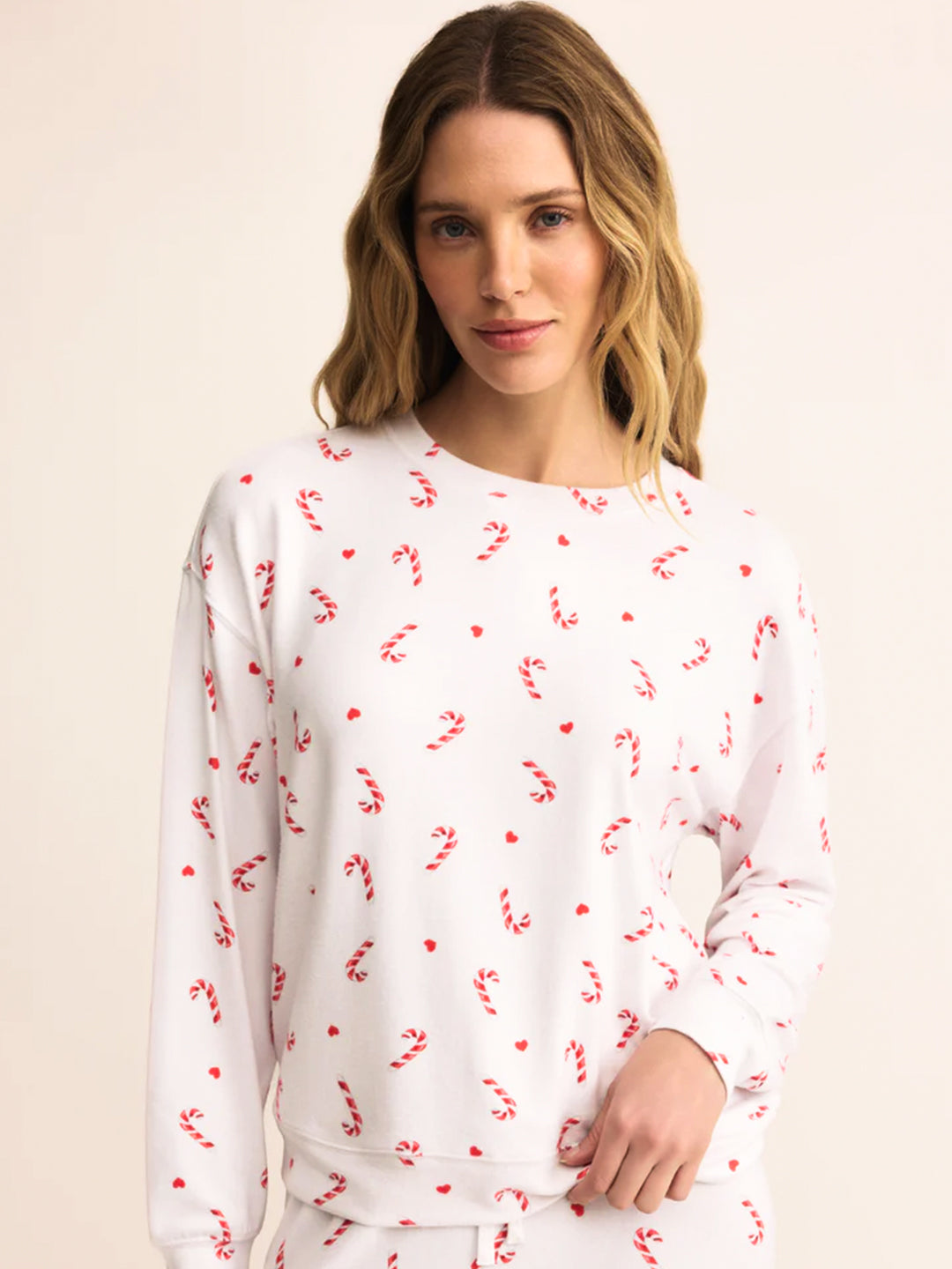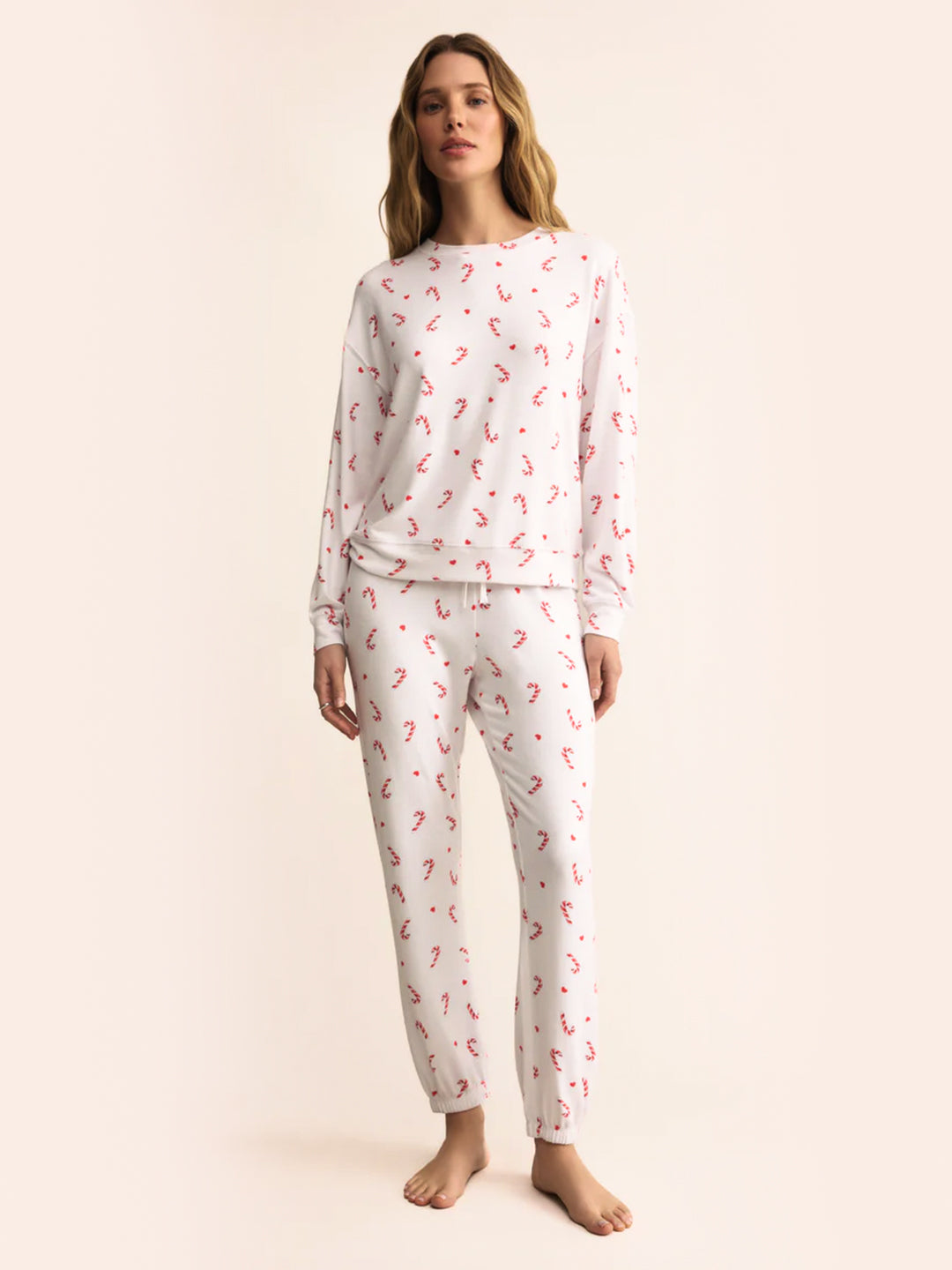 Sweet and seasonal, this relaxed set is crafted in silky jersey with a playful candy cane print. With a classic crew neck top and high-rise jogger, it’s the kind of festive cozy she’ll want all winter long.