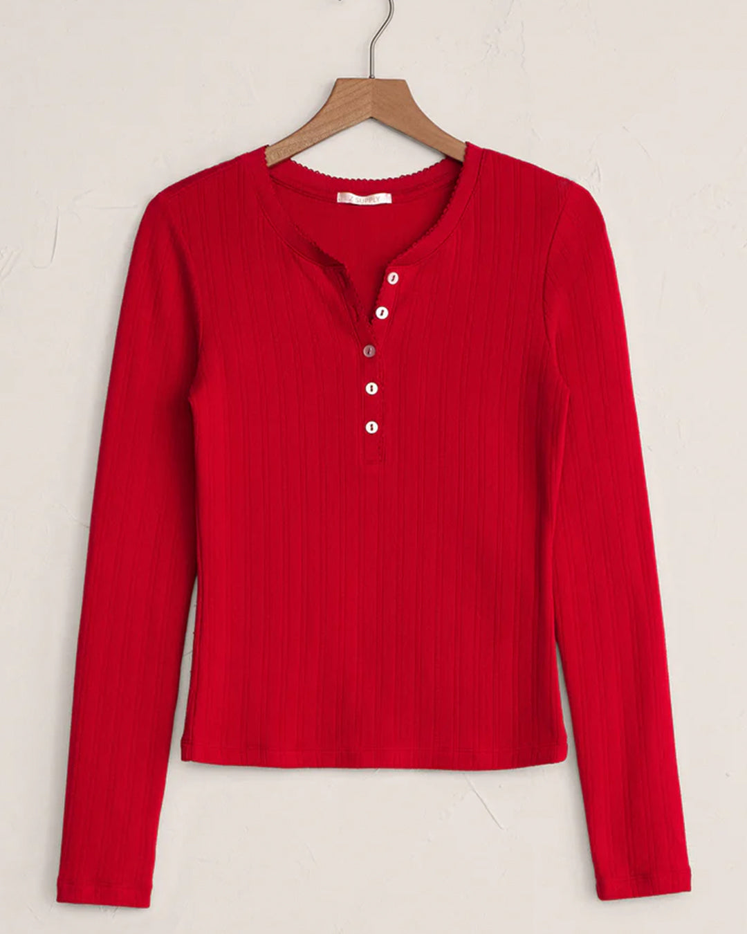Delicate pointelle knit meets a classic henley design for a touch of texture and softness. Its fitted silhouette makes it an easy base layer or a cozy lounge favorite on its own.