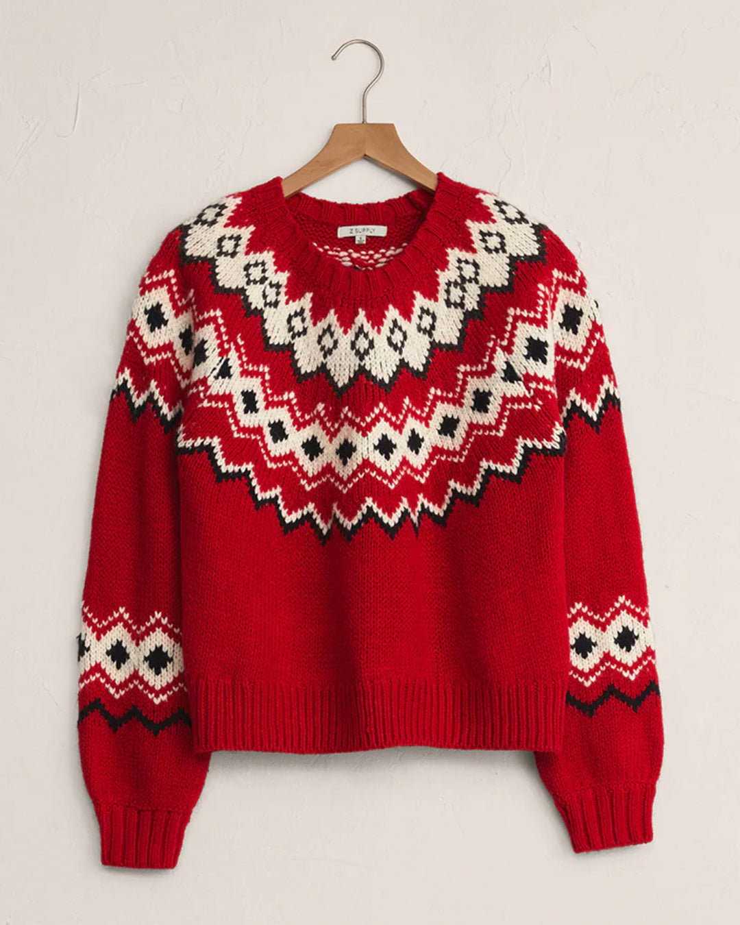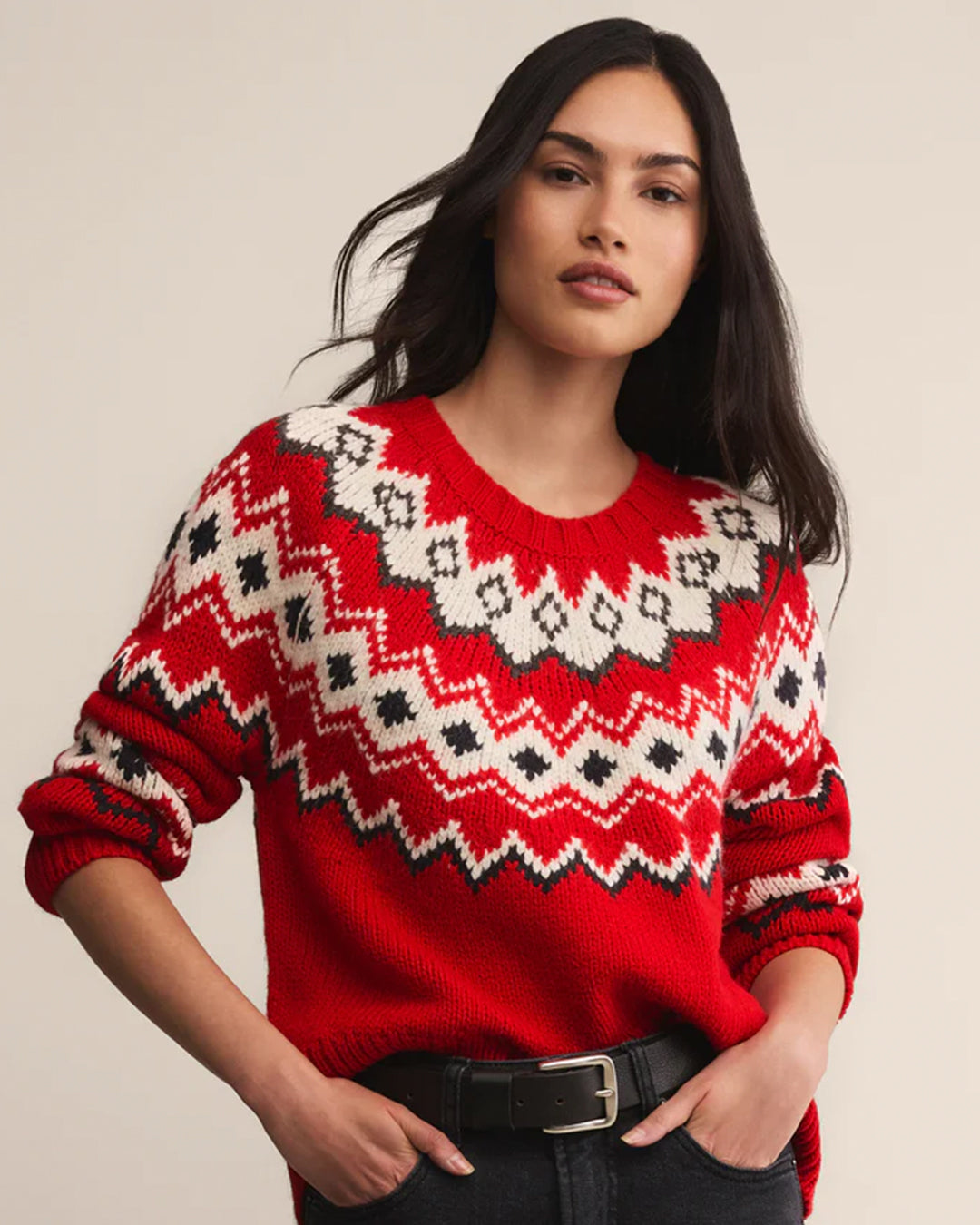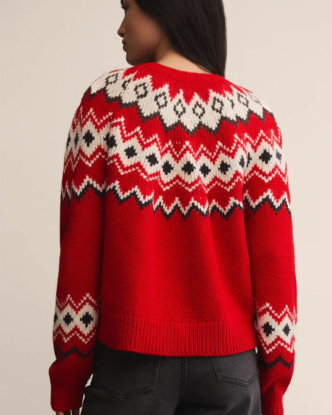 Classic Fair Isle meets cozy yarns in this midweight knit designed for colder days. Relaxed and easy to style, it’s a timeless seasonal favorite.