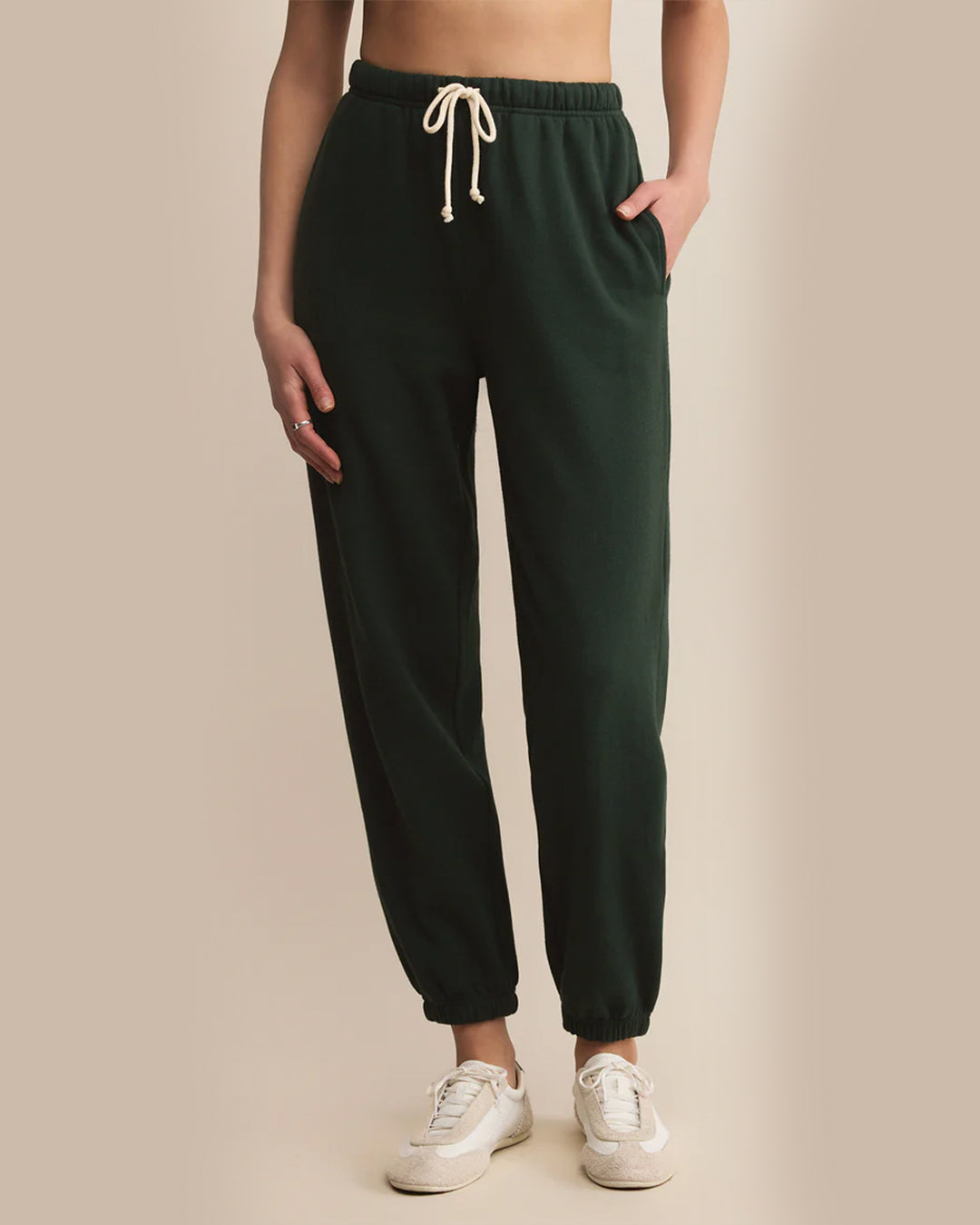 These midweight fleece joggers are high-rise with an elastic drawstring waistband and side seam pockets for that classic, comfy feel. Designed to hit at the ankle, they’re your go-to for cozy mornings, afternoon errands, or lounging in style.