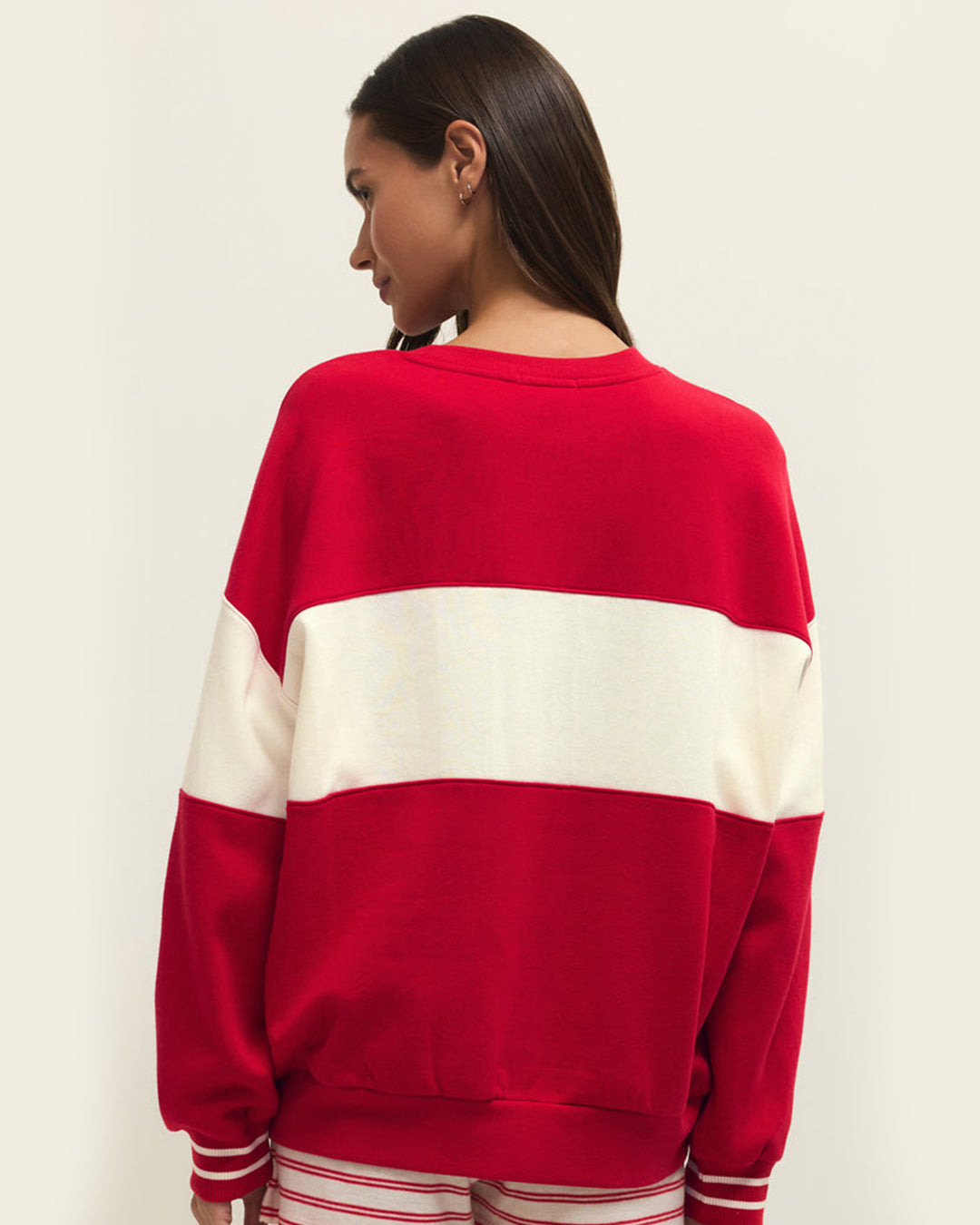 This oversized crewneck sweatshirt is made from soft cotton-blend fleece and finished with boucle “Love” collegiate lettering on the front. With its roomy fit and plush interior, it’s the kind of cozy you’ll never want to take off.